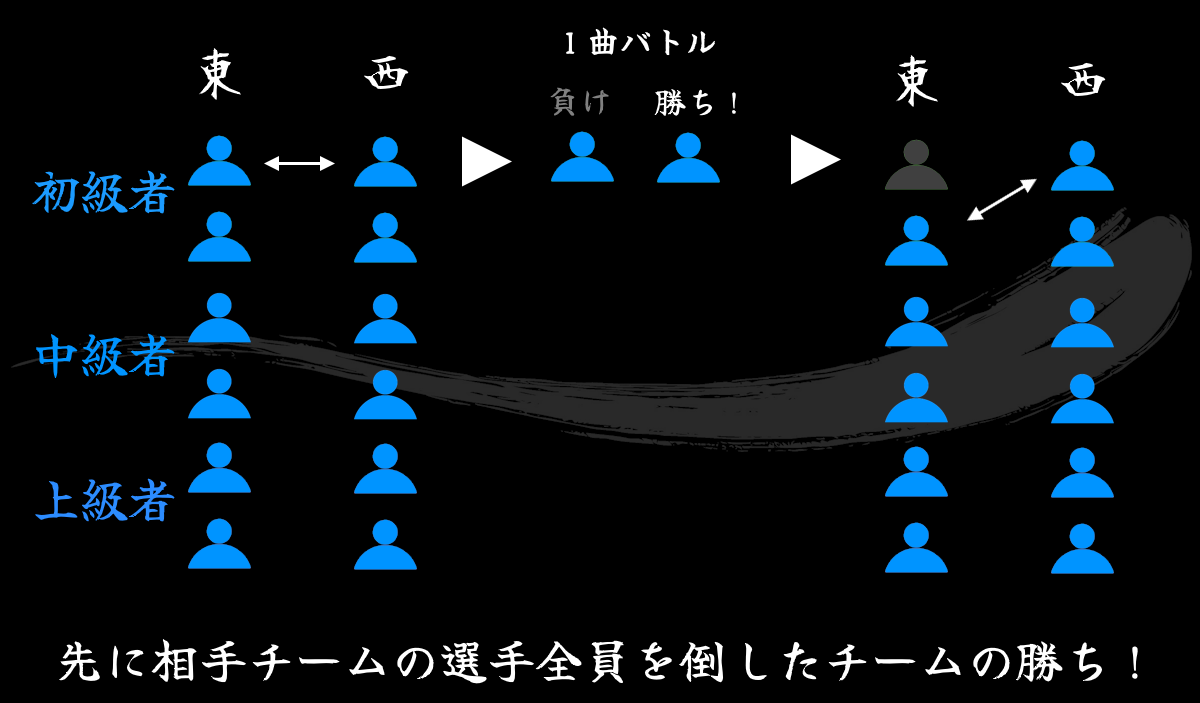 *それぞれのバトルは一曲になります。 - 先に相手チームの選手全員を倒したチームが勝利!